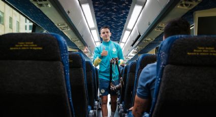 La afición de las Águilas quedó fascinada con la chamarra de calentamiento que portaron los elementos, la prenda es azul valeriana con amarillo en la mangas y espalda, escudo y marca en el frente.